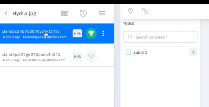 After a data row is labeled and enters the review stage, the first set of annotations entered for a data row represents consensus by default. Reviewers can reassign consensus to another set of annotations once the data row has more than one label. If your data row has been labeled more than once, you’ll view all of the label entries on that data row in the data row browser. The following example shows a data row with two sets of labels. The green trophy icon indicates that the first set of annotations is considered “consensus.” To change consensus, click the trophy icon next to the preferred annotations.