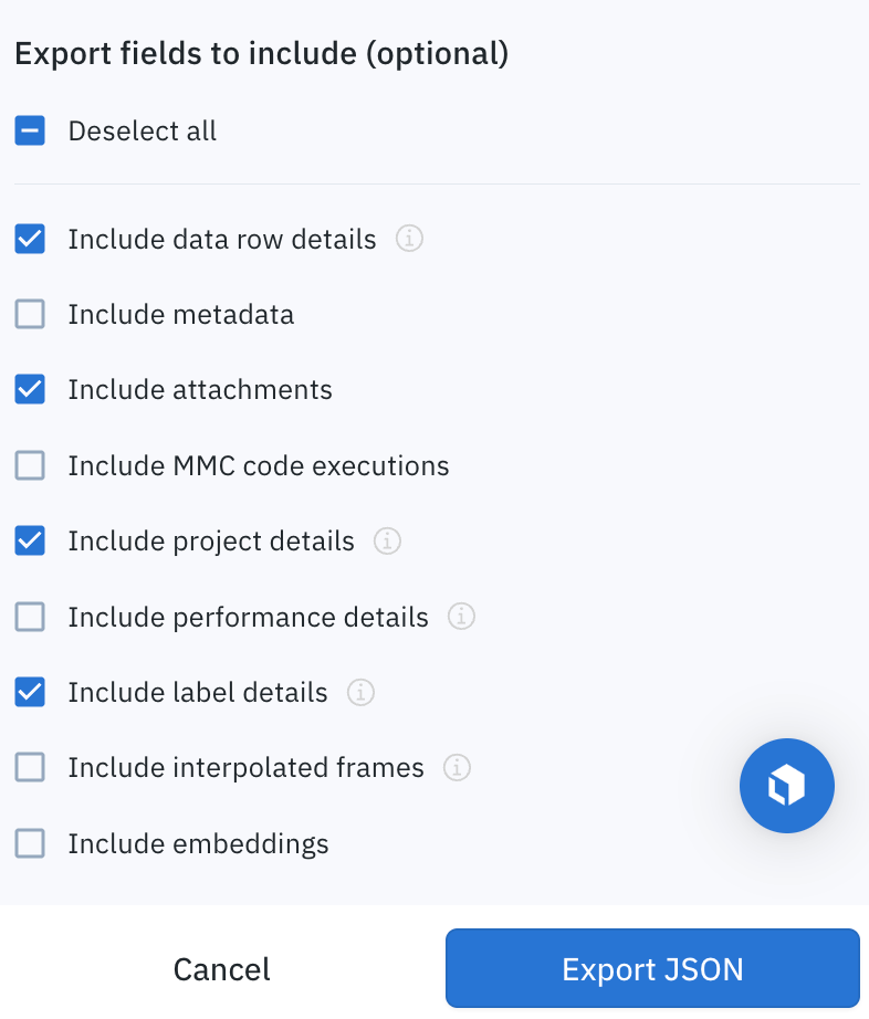 - Choose the fields to include or exclude in your final export or click Select all. For descriptions of these export fields, visit our export specifications.