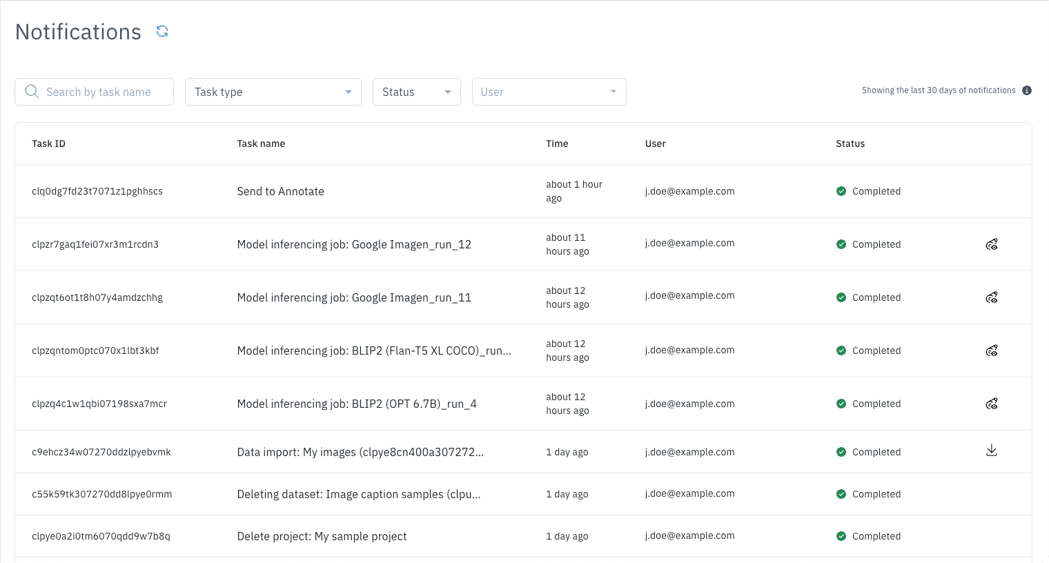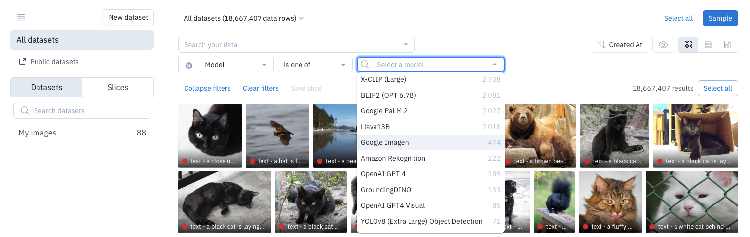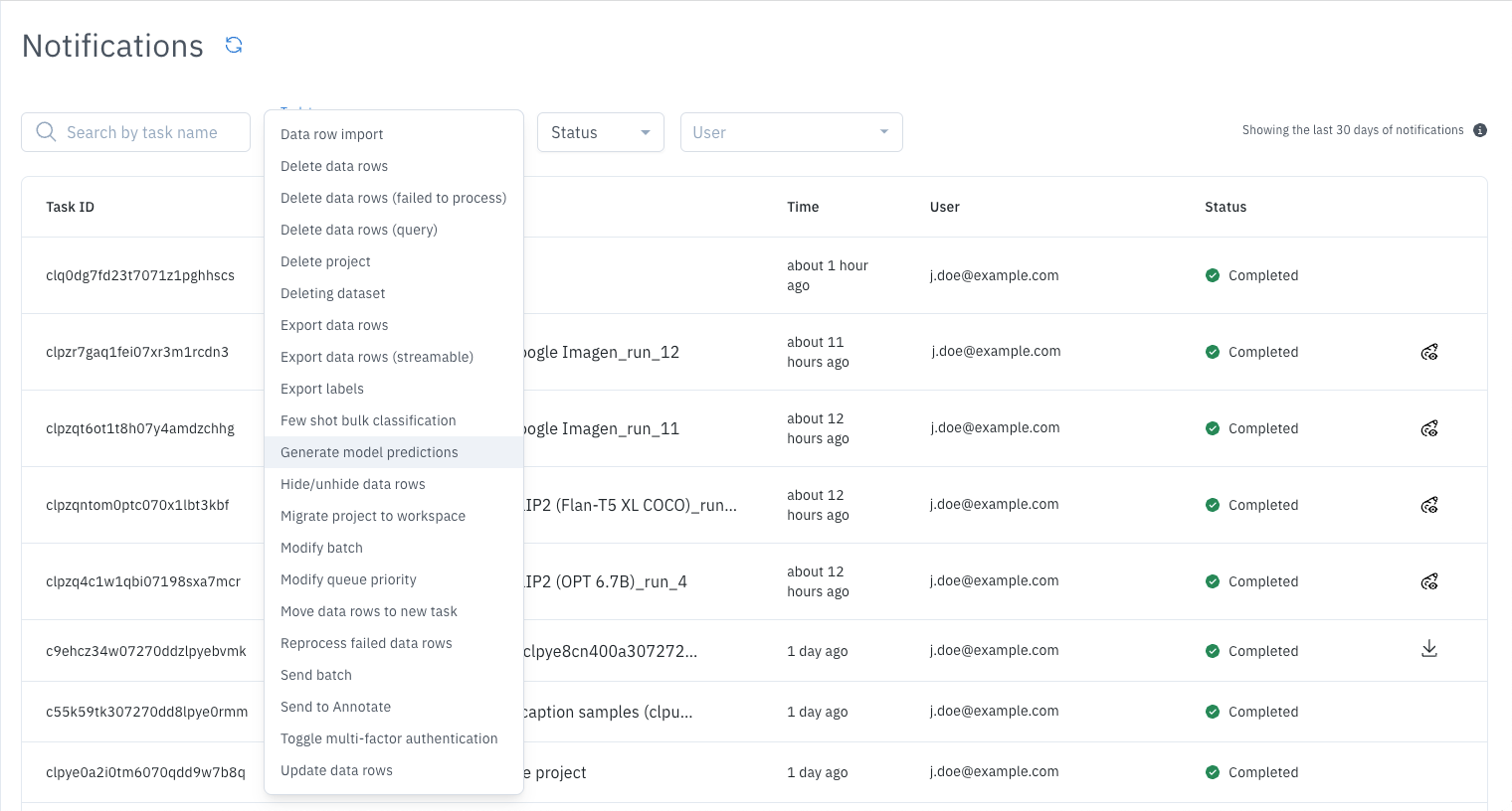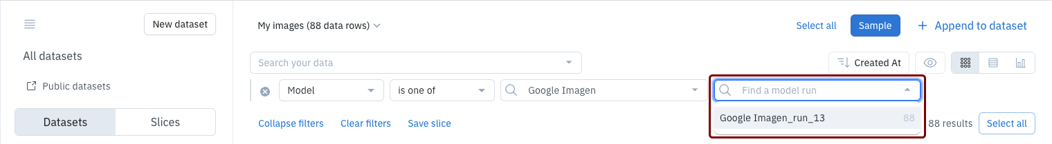 To view predictions for data rows in a model run, use a Catalog filter to search for the model run data rows:-