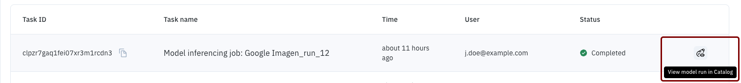 To view the data rows for a given model run, select View model run in Catalog.