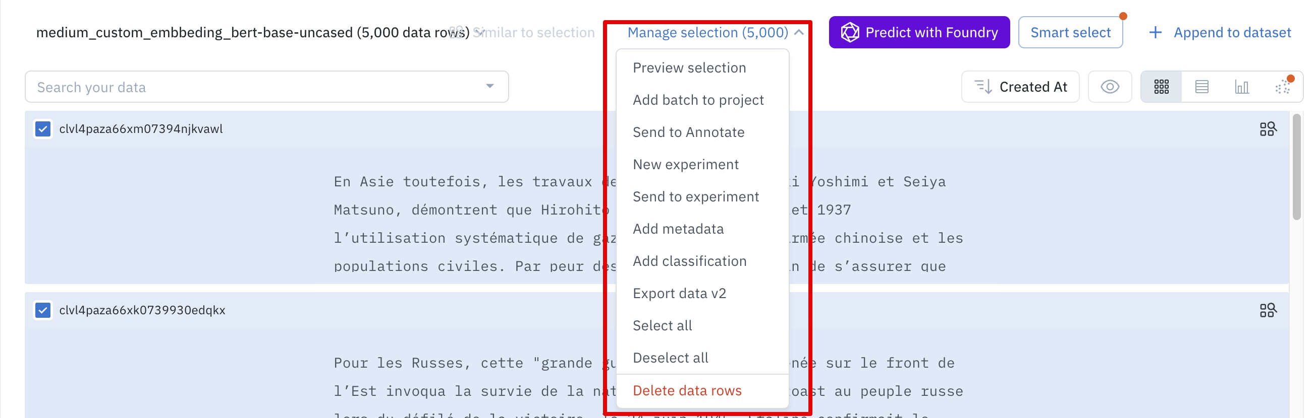 send to Annotate | Send data row prediction(s) to a project |