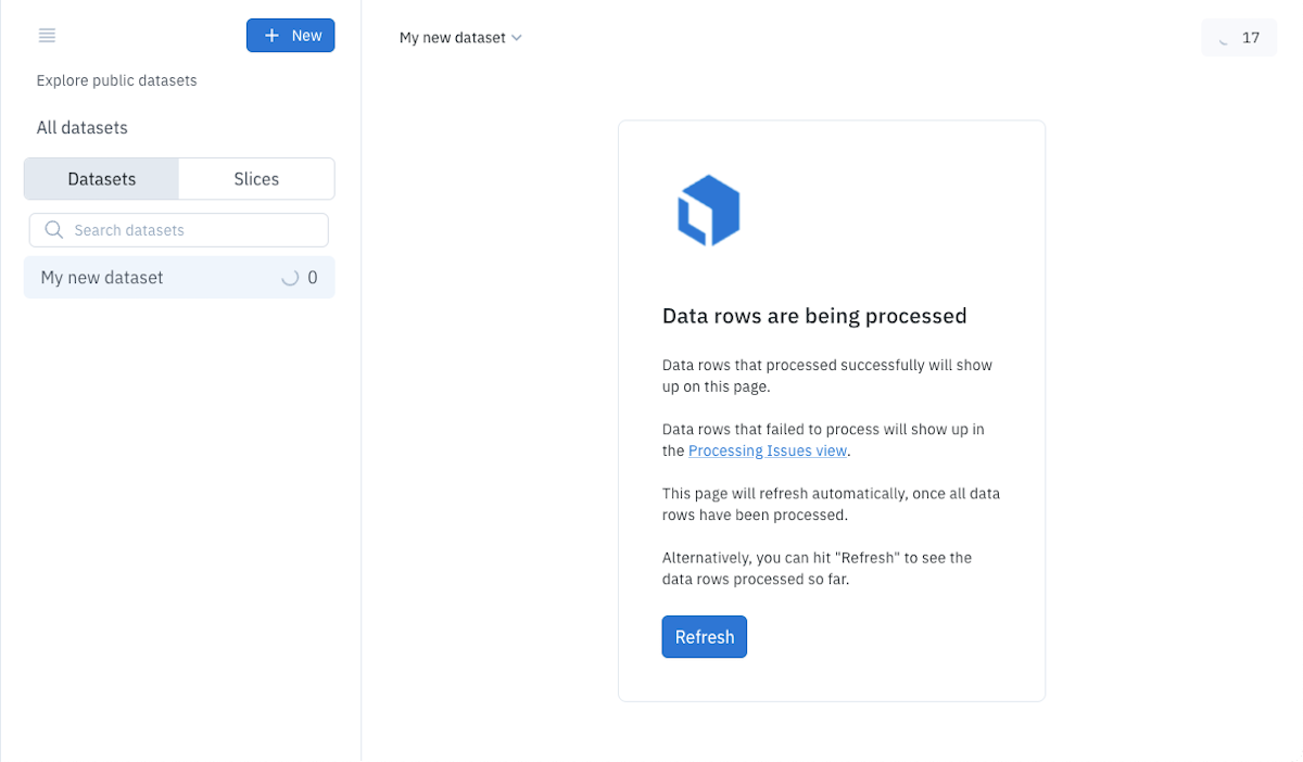 Once files are uploaded, Labelbox generates previews and performs other initialization tasks.